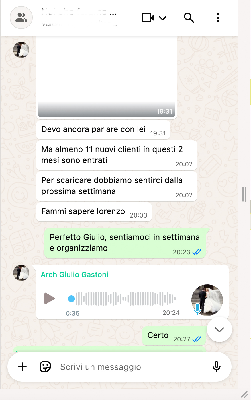 Tutto coordinato in un unico flusso operativo, con aggiornamenti e supporto diretto via WhatsApp.